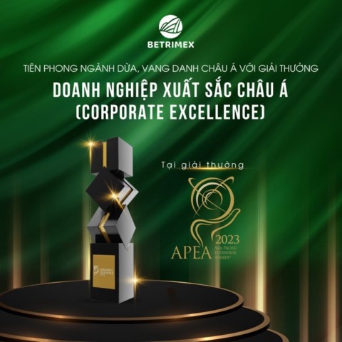 Với chủ đề “Châu Á phục hồi – Nắm trọn cơ hội”, APEA 2023 vinh danh những “điểm sáng” nổi bật giữa bối cảnh kinh tế khó khăn và thách thức. Vinh dự nhận giải thưởng “Doanh nghiệp xuất sắc châu Á” (Corporate Excellence Award), Betrimex chứng tỏ sức bền của một doanh nghiệp lâu năm, dày dặn kinh nghiệm trước biến cố, đồng thời khẳng định vị thế dẫn đầu trong ngành sản xuất và xuất khẩu các sản phẩm từ dừa.