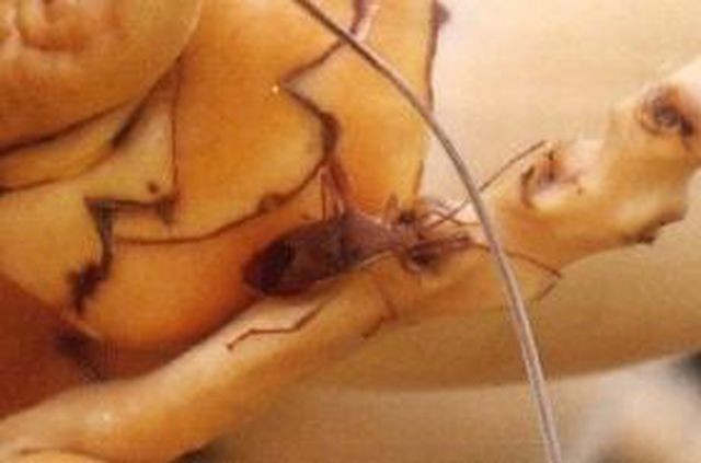 Bọ vòi voi bị nấm xanh ký sinh chết.
