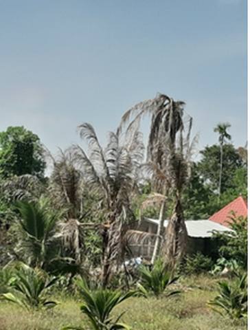 Cây dừa chết vì bị sâu đầu đen gây hại
