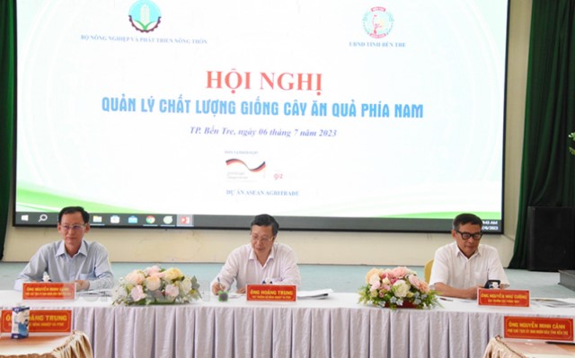 BDK.VN - Ngày 6-7-2023, Bộ Nông nghiệp và Phát triển nông thôn phối hợp UBND tỉnh Bến Tre tổ chức hội nghị quản lý chất lượng cây ăn quả phía Nam. Thứ trưởng Bộ Nông nghiệp và Phát triển nông thôn Hoàng Trung, Cục trưởng Cục trồng trọt Nguyễn Như Cường, Phó chủ tịch UBND tỉnh Nguyễn Minh Cảnh chủ trì hội nghị.