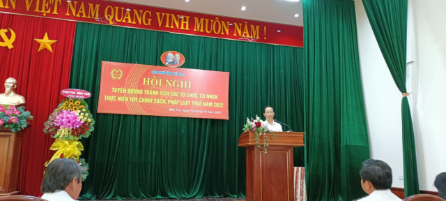 Sáng ngày 12/10/2023, tại Hội trường Cục Thuế tỉnh Bến Tre, ông Nguyễn Trúc Sơn – Ủy viên Ban Thường vụ Tỉnh ủy, Phó Chủ tịch Thường trực Ủy ban nhân dân (UBND) tỉnh, Trưởng Đoàn Đại biểu Quốc hội tỉnh và ông Võ Văn Thanh – Cục trưởng Cục Thuế tỉnh đã đồng chủ trì Hội nghị tuyên dương thành tích các doanh nghiệp, cá nhân thực hiện tốt chính sách, pháp luật thuế năm 2022. Tham dự Hội nghị còn có đại diện một số ngành liên quan: Sở Công Thương, Sở Kế hoạch và Đầu tư, Sở Tài chính, Sở Tài nguyên và Môi trường, Chi cục Hải quan Bến Tre, Đảng ủy khối Cơ quan - Doanh nghiệp tỉnh, cùng 101 đại biểu đại diện cho 154 doanh nghiệp, cá nhân điển hình chấp hành tốt chính sách pháp luật về  thuế năm 2022.