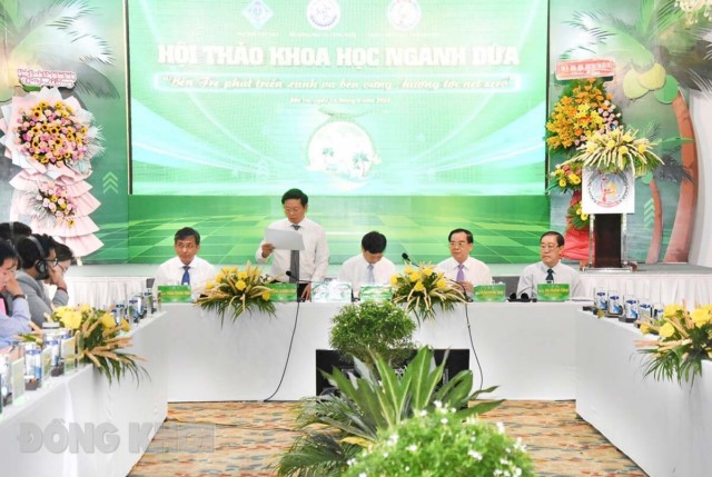 Phát biểu khai mạc hội thảo, Chủ tịch UBND tỉnh Trần Ngọc Tam cho rằng, tính đến tháng 6-2024, diện tích dừa của Bến Tre hơn 79.000ha, lớn nhất cả nước. Bến Tre được mệnh danh là "Xứ sở dừa Việt Nam” giúp địa phương thu về hơn 500 triệu USD mỗi năm. Trong quá trình phát triển, lãnh đạo tỉnh luôn quan tâm, tạo điều kiện để phát huy lợi thế về tiềm năng của cây dừa, một trong những cây công nghiệp chủ lực của tỉnh; về xây dựng cơ chế, chính sách thu hút đầu tư và tăng cường đẩy mạnh ứng dụng khoa học công nghệ vào sản xuất và biến dừa gắn với nhu cầu tiêu thụ trong nước và thị trường quốc tế.