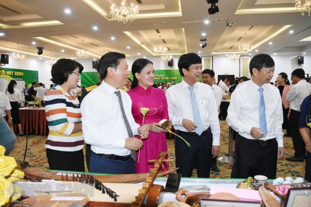 Lãnh đạo tỉnh và đại biểu tham quan các gian hàng.