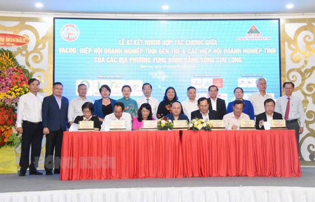 Các doanh nghiệp ký kết mở rộng hợp tác tại Diễn đàn Doanh nghiệp VACOD - Bến Tre về hỗ trợ thúc đẩy doanh nghiệp phát triển bền vững.
