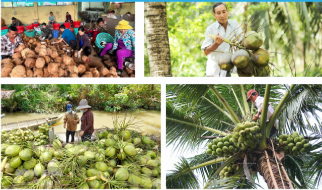 Trong đó, HTX Nông nghiệp Thới Thạnh (xã Thới Thạnh, huyện Thạnh Phú), HTX Dịch vụ Nông nghiệp Công bằng Hưng lễ (xã Hưng Lễ, huyện Giồng Trôm), HTX Dịch vụ Nông nghiệp Châu Hòa (xã Châu Hòa, huyện Giồng Trôm), HTX Nông nghiệp Định Thủy (xã Định Thủy, huyện Mỏ Cày Nam), đã được Công ty TNHH Chế biến dừa Lương Quới, Công ty cổ phần xuất nhập khẩu Bến Tre (Betrimex) ký hợp đồng liên kết, canh tác theo mô hình vườn dừa hữu cơ (mỗi HTX hiện có từ 120 - 160ha vườn dừa hữu cơ từ liên kết với thành viên). Các công ty này cũng đã lựa chọn để đầu tư, hỗ trợ xây dựng điểm sơ chế dừa hữu cơ tại HTX, tạo việc làm, thu nhập từ 5 - 7 triệu đồng/người/năm cho 40 - 60 thành viên và lao động nhàn rỗi tại địa phương.