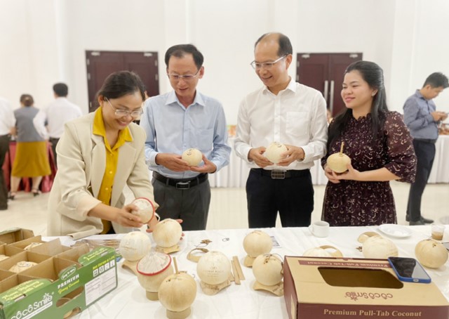 Đối với dừa uống nước, toàn tỉnh hiện có trên 15 ngàn ha và diện tích dừa uống nước ngày càng tăng lên, bước đầu đã hình thành CGT phục vụ tốt cho thị trường nội địa và xuất khẩu. Hiện tại, tỉnh đã có hơn 5 DN xuất khẩu dừa tươi sang thị trường Nhật Bản, Singapore, Đài Loan, Úc, Canada… Có 20 DN tham gia xây dựng cơ sở đóng gói và mã số vùng trồng xuất khẩu sang thị trường Trung Quốc. Trong đó, có 13 cơ sở đóng gói, 35 vùng trồng, với 2.343ha đã nộp hồ sơ về Cục Bảo vệ thực vật để chuẩn bị đáp ứng cho thị trường Trung Quốc.