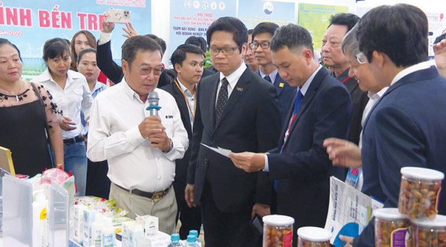 Ông Nguyễn Công Trí thuyết trình “mỹ phẩm xanh” tại “Hội thảo thúc đẩy hợp tác xúc tiến thương mại – đầu tư giữa tỉnh Bến Tre và thành phố Thủ Đức” tổ chức tại Bến Tre ngày 16-9-2022. Ảnh: Nhân vật cung cấp