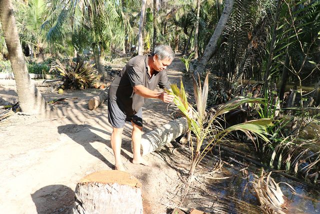Ông Lê Văn Tùng, ngụ Tổ 1, ấp An Nhơn 1, xã Đa Phước Hội, huyện Mỏ Cày Nam lắc đầu ngao ngán trước sự bất trị của sâu đầu đen. Vườn dừa của ông Tùng vẫn còn nặng mùi thuốc trừ sâu sau mấy ngày phun xịt. Ông Tùng cho biết: “Đến lần thứ ba phun thuốc, tôi phải thuê người ở xã Hương Mỹ. Ông ấy có máy phun rất mạnh, phun ướt hết tán lá nên tiền công từ 5 ngàn đồng lên 7 ngàn đồng/cây dừa. Lượng thuốc phun xịt hao hơn, nhưng vẫn chưa diệt hết. Nếu bỏ ra 100 ngàn đồng/cây dừa để phun thuốc diệt hết sâu đầu đen thì tôi cũng sẵn sàng nhưng không ai dám nhận”.