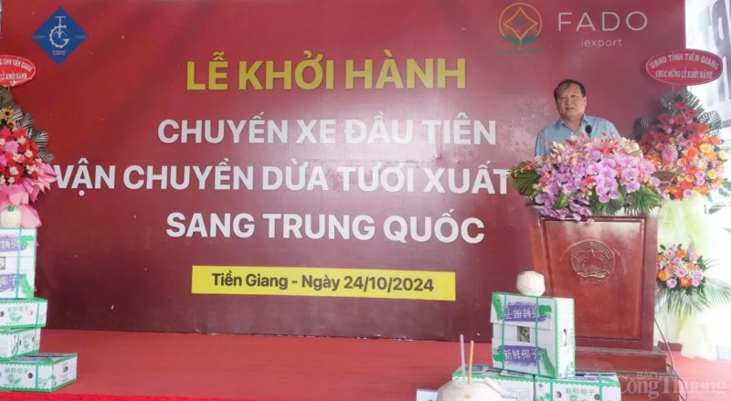 Phát biểu tại sự kiện, ông Phạm Văn Trọng - Phó Chủ tịch UBND tỉnh Tiền Giang nhấn mạnh: Lễ khởi hành chuyến xe đầu tiên vận chuyển dừa tươi Tiền Giang xuất khẩu sang Trung Quốc là sự kiện quan trọng không chỉ đánh dấu bước tiến mới trong ngành nông nghiệp mà còn góp phần nâng cao giá trị sản phẩm nông sản Việt Nam trên thị trường quốc tế.