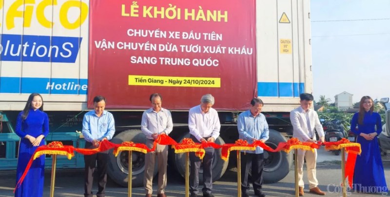 Chiều ngày 24/10, tại Hợp tác xã Nông nghiệp sạch Hưng Thịnh Phát (huyện Chợ Gạo), Sở Công Thương tỉnh Tiền Giang phối hợp với Công ty Cổ phần Fadoi Export tổ chức “Lễ khởi hành chuyến xe đầu tiên vận chuyển dừa tươi Tiền Giang xuất khẩu sang Trung Quốc”.