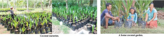 Về khía cạnh đó, vườn nhà có thể đóng một vai trò năng động, vì hiện tại lĩnh vực bất động sản và lĩnh vực trồng trọt quy mô trung bình, ở một mức độ nhất định, đã áp dụng các biện pháp quản lý cần thiết vì đất đai của họ được vận hành như những đơn vị tạo thu nhập. Hai cuộc khảo sát chẩn đoán do Viện Nghiên cứu Dừa (CRI) thực hiện cũng đã xác định rằng ngay cả trong thời kỳ vận hành chương trình trợ cấp phân bón của chính phủ, chỉ có dưới 30% diện tích đất trồng dừa được bón phân.