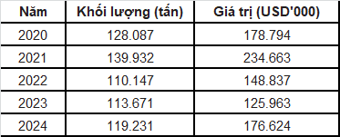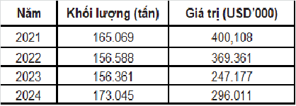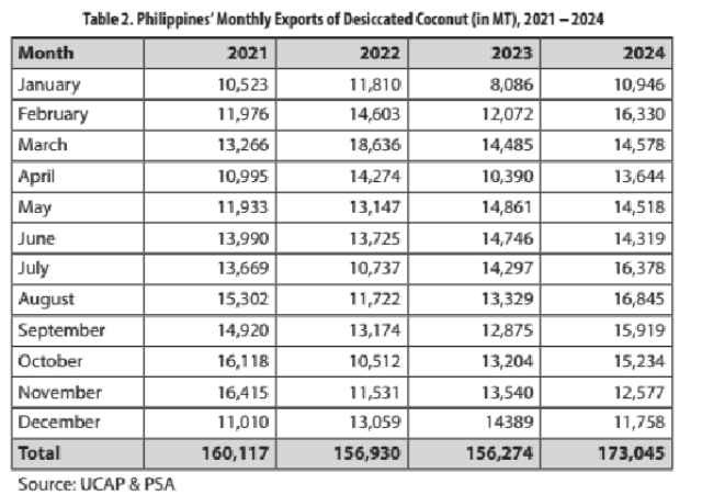 Bảng 2. Xuất khẩu dừa nạo sấy của Philippines, 2021-2024
