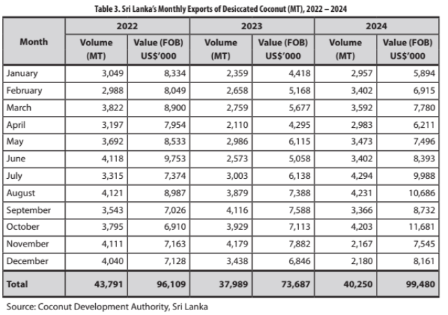 Bảng 3. Xuất khẩu dừa nạo sấy của Indonesia, 2020-2024