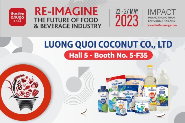 Đến với Thaifex – Anuga Asia 2023, Vietcoco mang đến cho quý khách hàng và đối tác những sản phẩm chất lượng cao từ dừa như: Nước dừa tươi, Sữa dừa, Nước cốt dừa, Dầu dừa tinh khiết, Dầu dừa cooking, Bơ dừa, Snack dừa, Cơm dừa sấy khô,……
